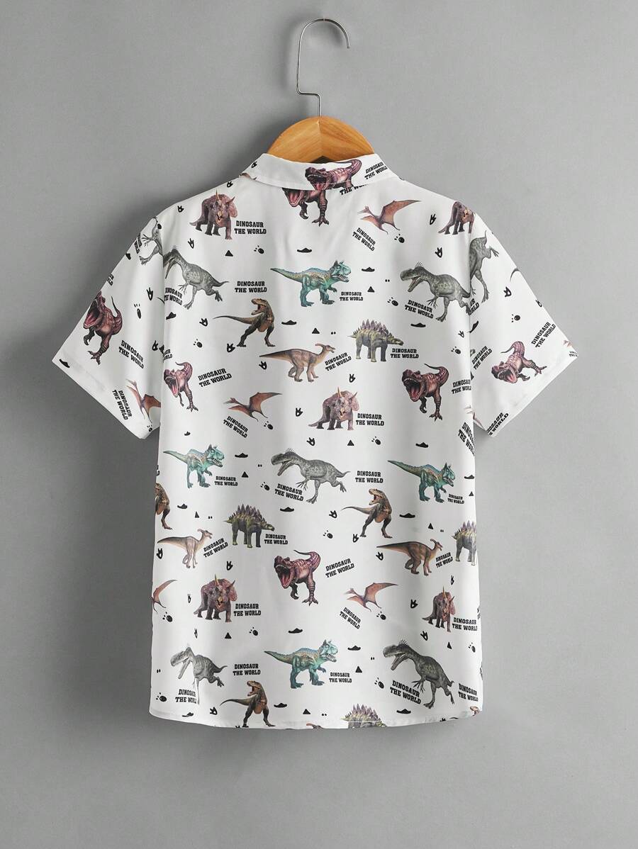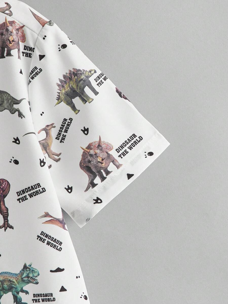 قميص مراهق للأولاد برسومات ديناصور وحروف