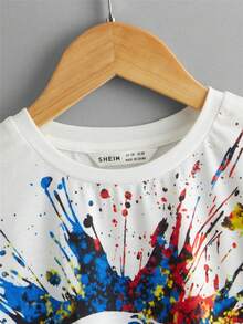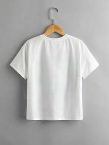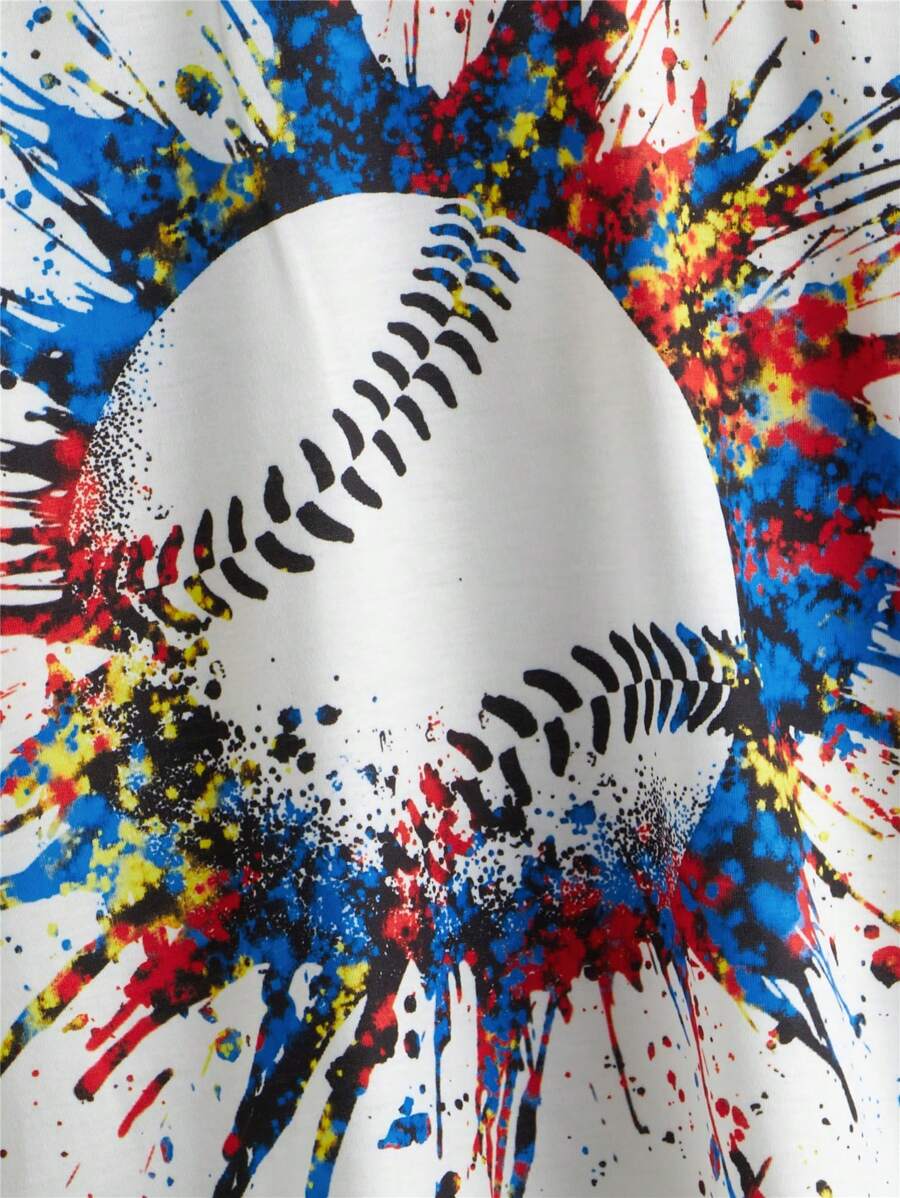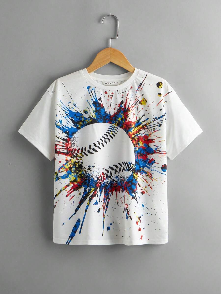 تي شيرت قطني بطباعة البيسبول مع كتف منخفض لفترة المراهقة الوسطى