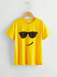 تي شيرت تريكو بياقة دائرية مطبوع عليه نظارات لفتى المراهقين