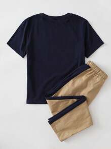 طقم تيشيرت بطباعة حروف ونمر وبنطلون بجيب مائل - أولاد