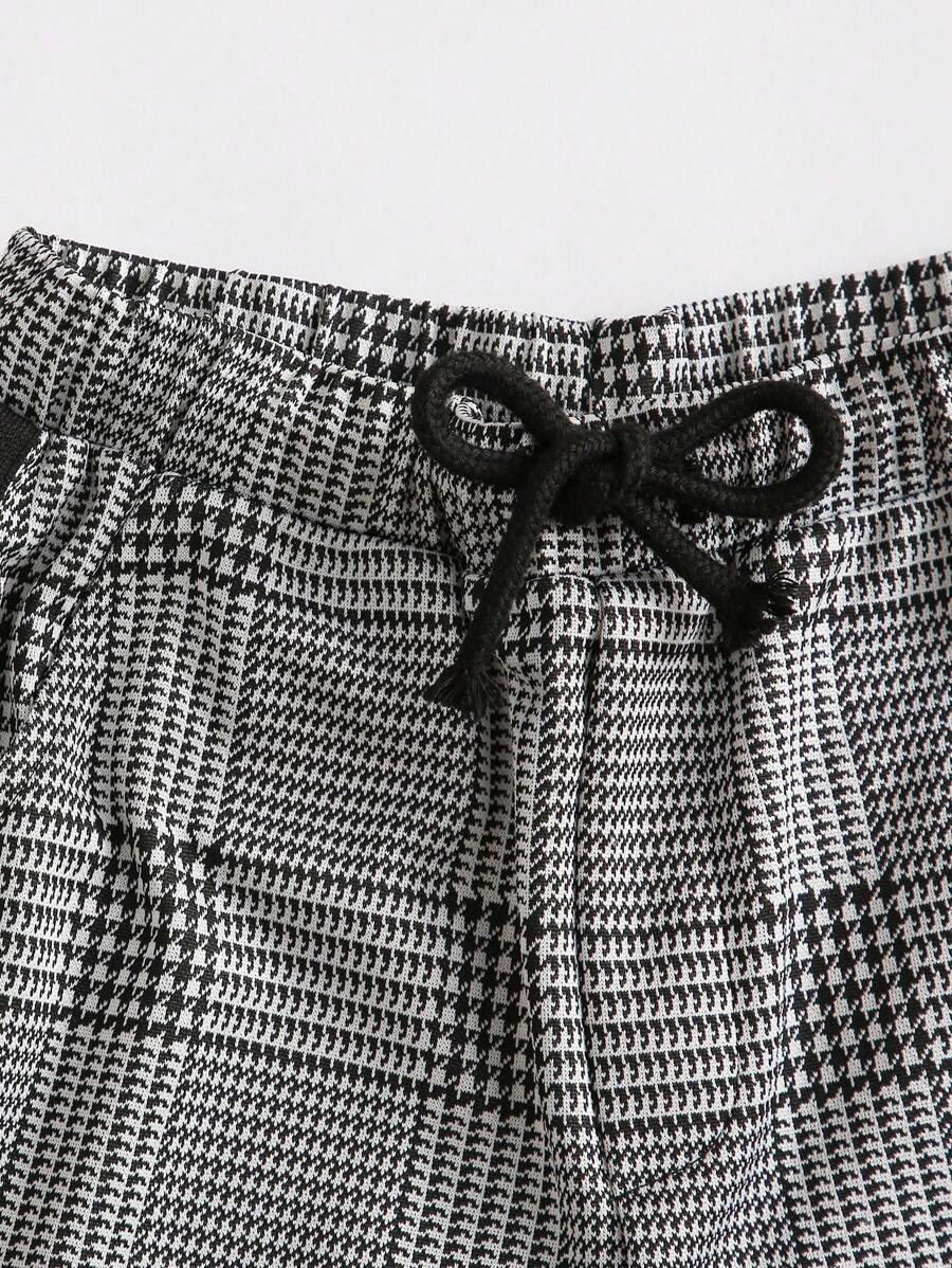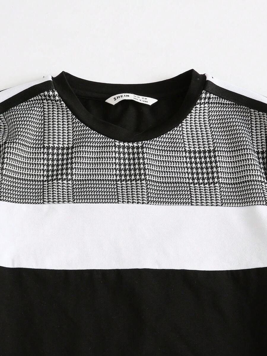 طقم للفتى المراهق يتكون من قميص ذو أكمام ممزقة ونسيج مخطط على الكتف وسروال مربعات