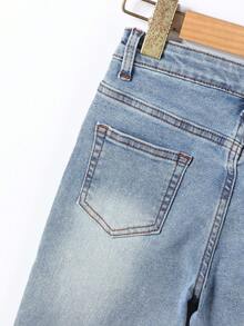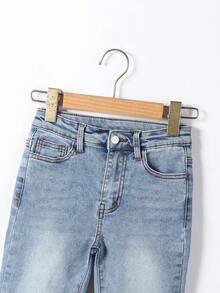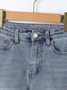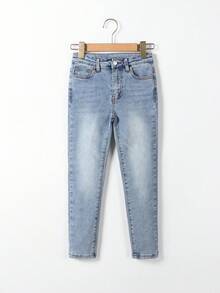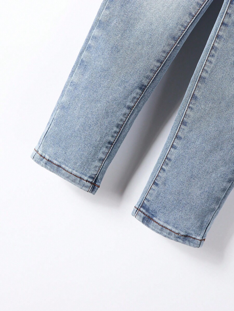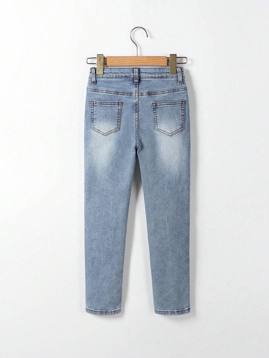 بنطال جينز ضيق للأولاد المراهقين بخصر مرن قابل للتعديل وجيوب 5 ، بتصميم كاجوال حديث وممزق، قطعة أساسية من الدنيم متعددة الاستخدامات طوال العام