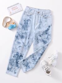 بنطلون جينز مدبب بسستة طائر وبصبغ متعادل للاولاد