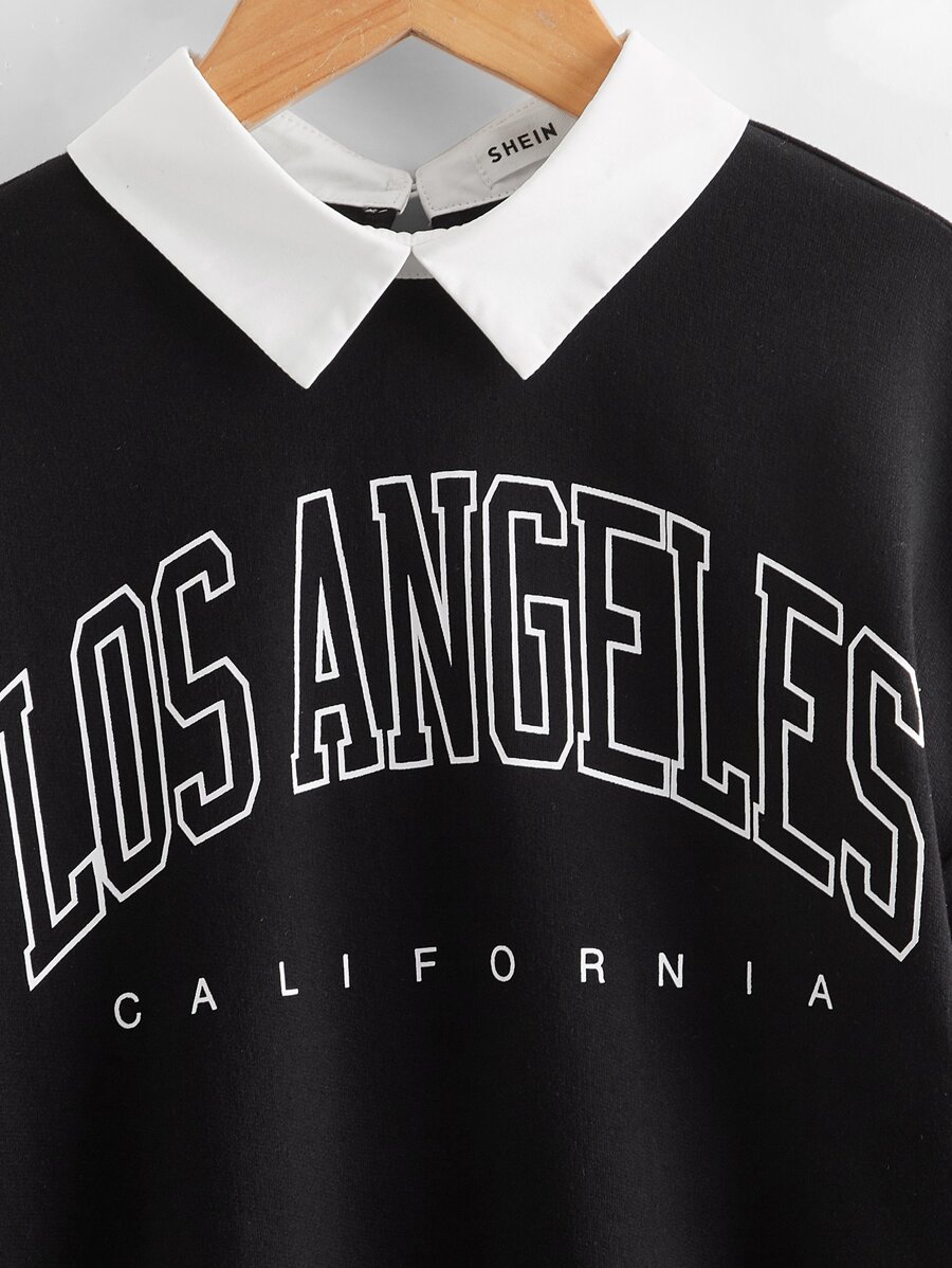 سويت شيرت فيه حروف و رقبة متباينة لفتيات البلوغ