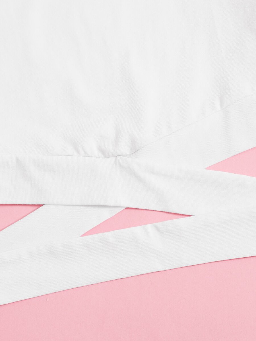 قميص متقاطع للفتيات في المرحلة الانتقالية بأكمام قصيرة و حواف مفتوحة