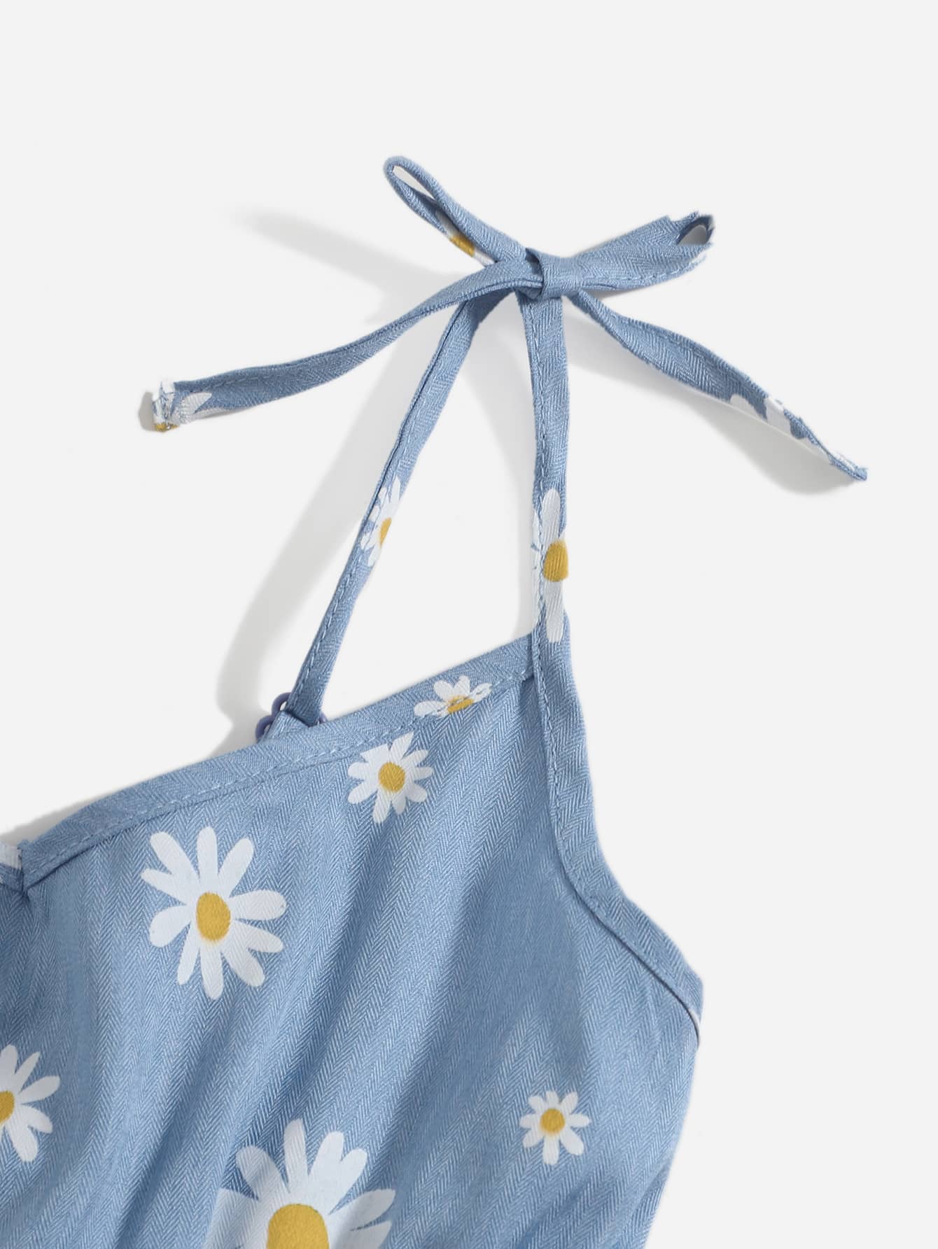 مجموعة قميص بتصميم وردة الأقحوان للفتيات من سن 10 إلى 14 سنة بحمالات ربط الكتف و تفصيل بالكشكش من الأعلى وشورت