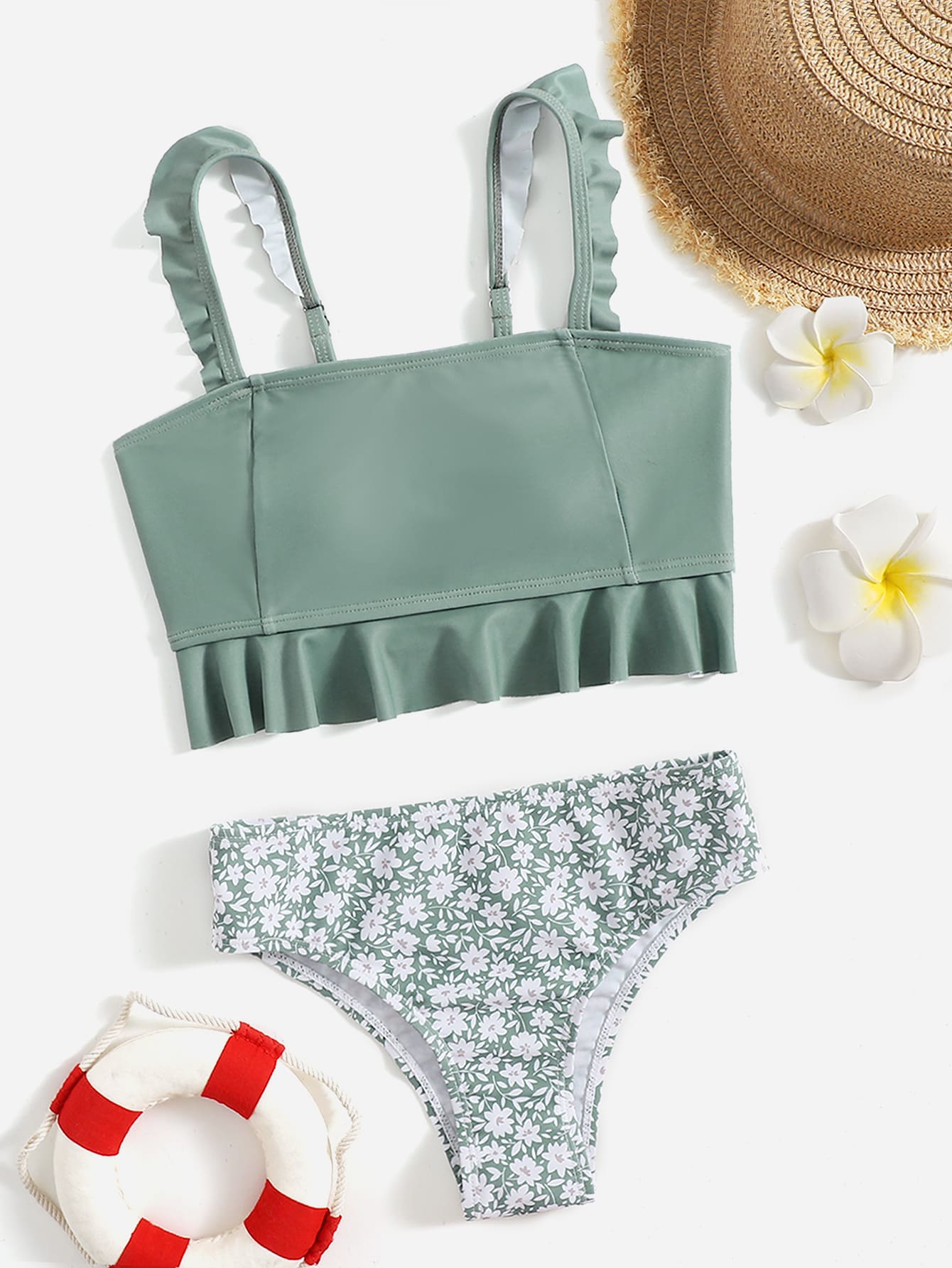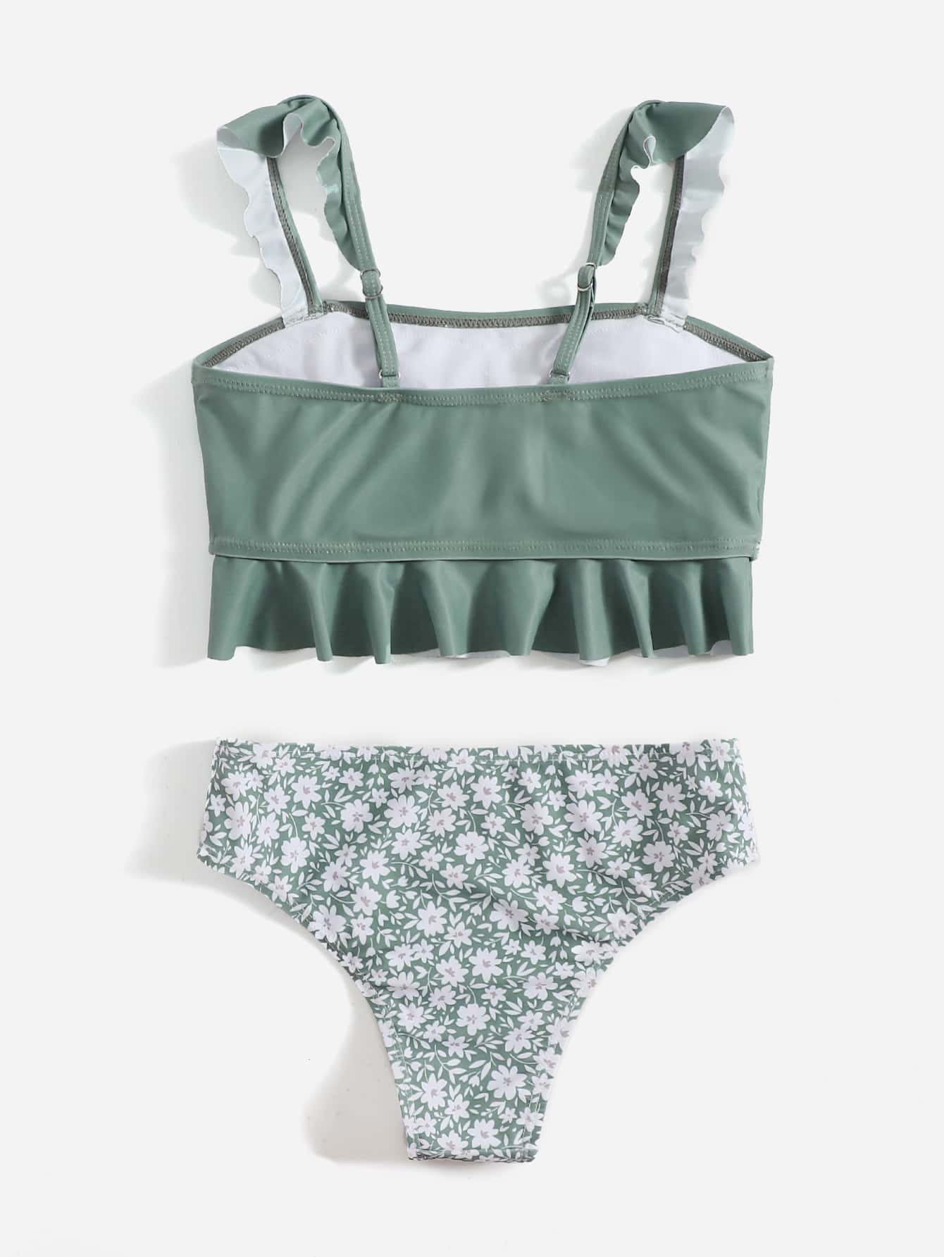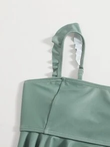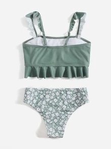 بيكيني بتفاصيل كشكشة زهرية للفتيات المراهقات للصيف والشاطئ