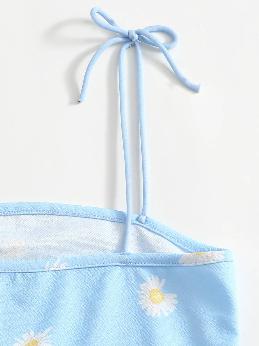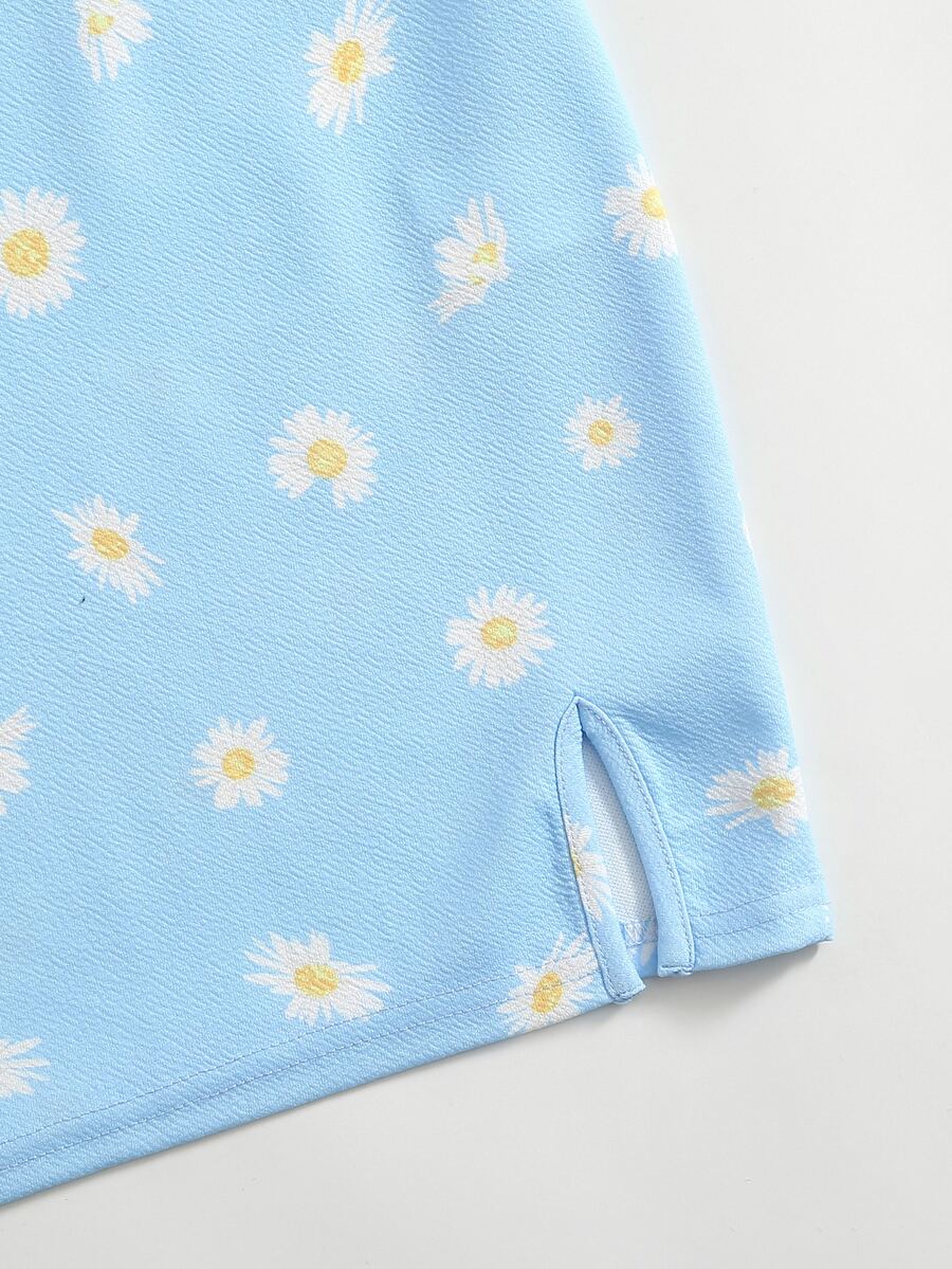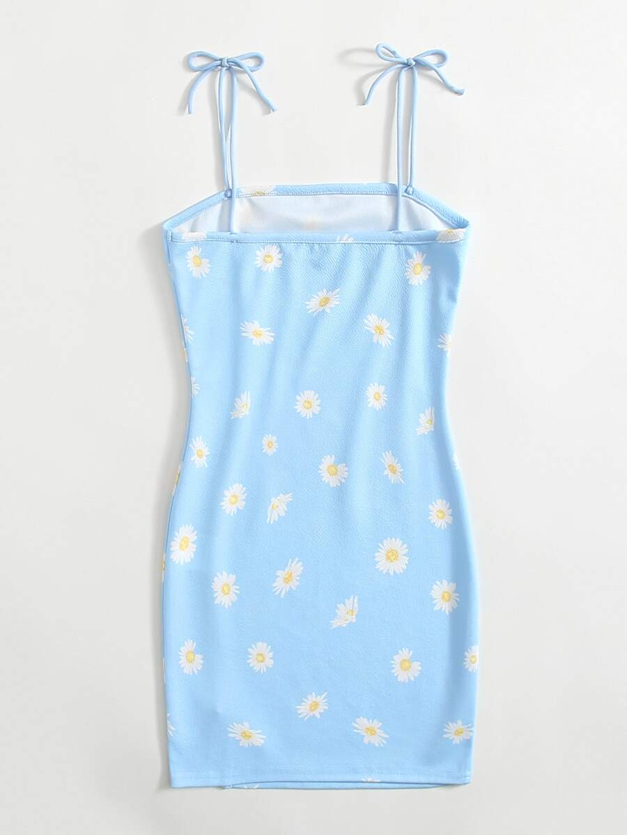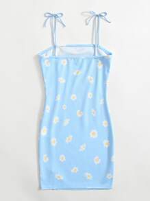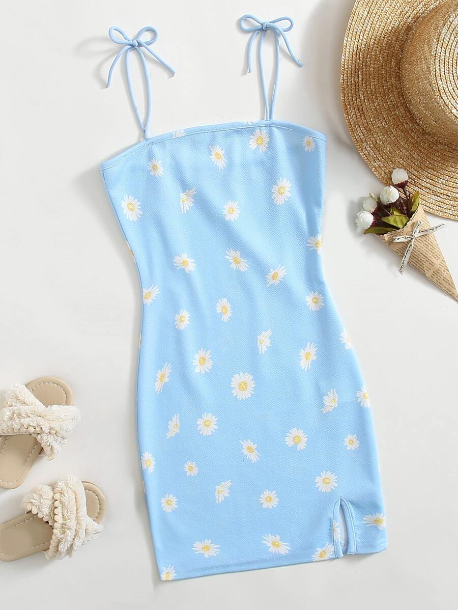 فستان كلوسيه الفتيات المراهقات بطباعة زهور مع حزام عقدة وهم منقسم
