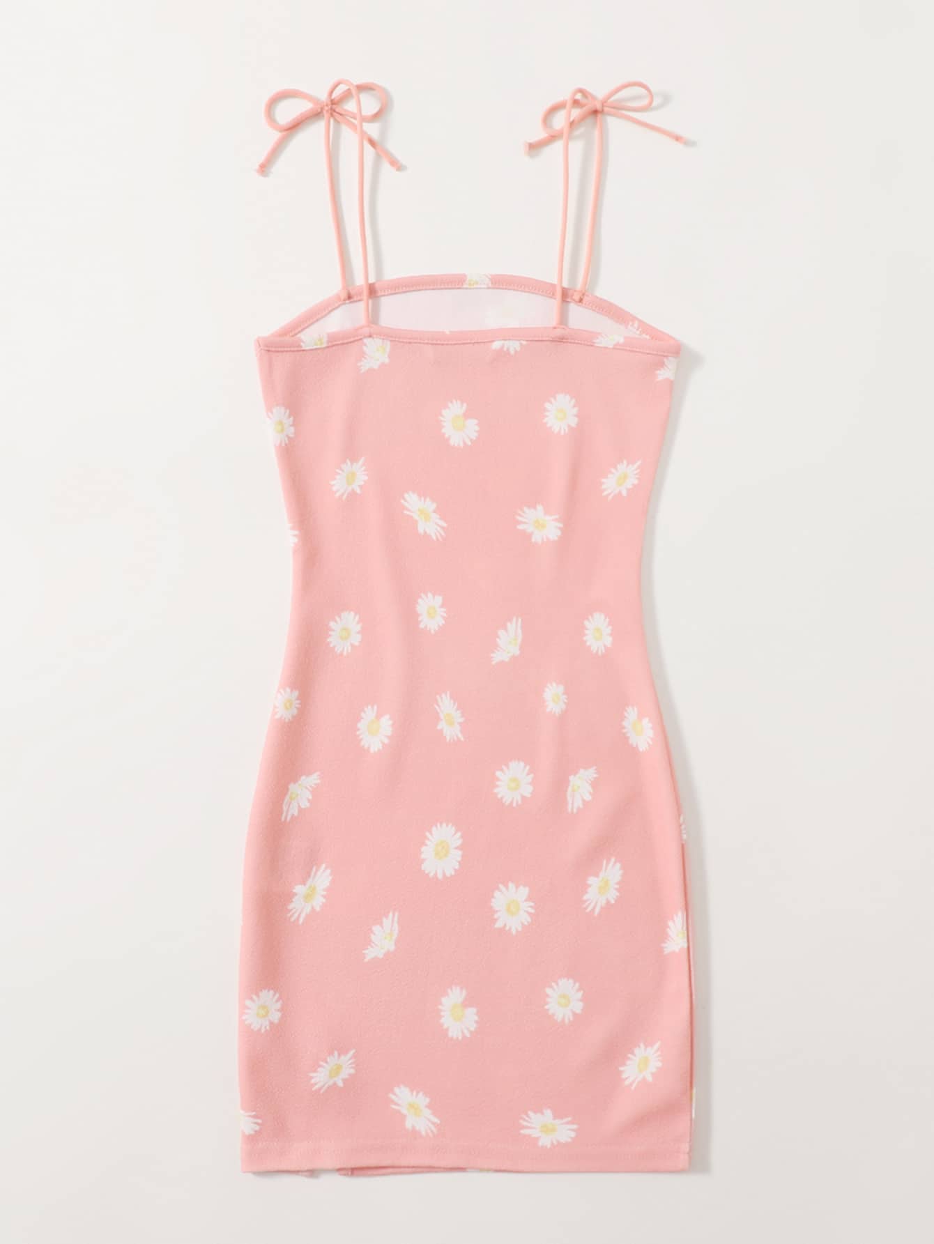 فستان زهري بعقدة وشريط انقسام للفتاة المراهقة