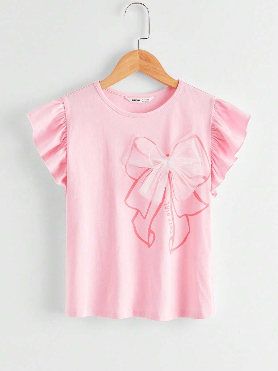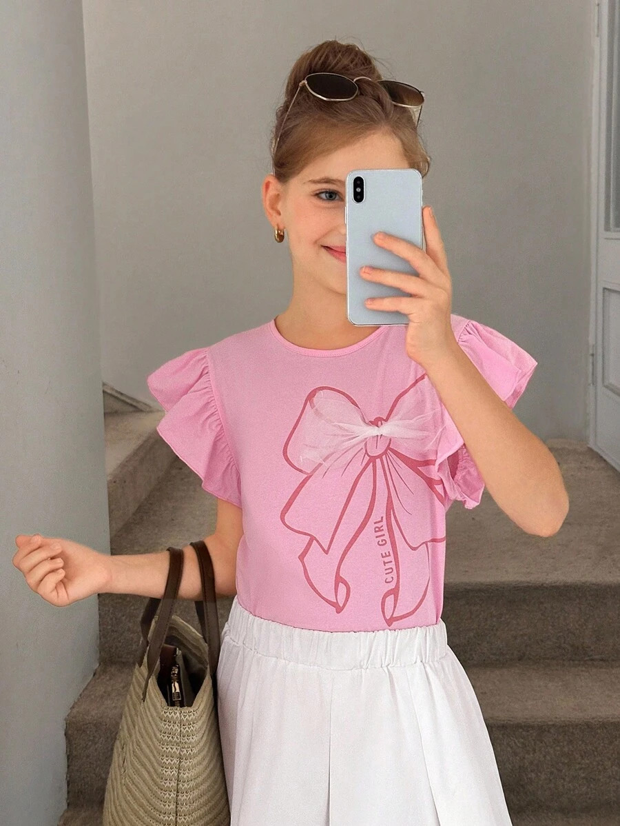 قميص تي شيرت مطبوع بتصميم الشبكة والوشاح المناسب للفتيات المراهقات في الصيف