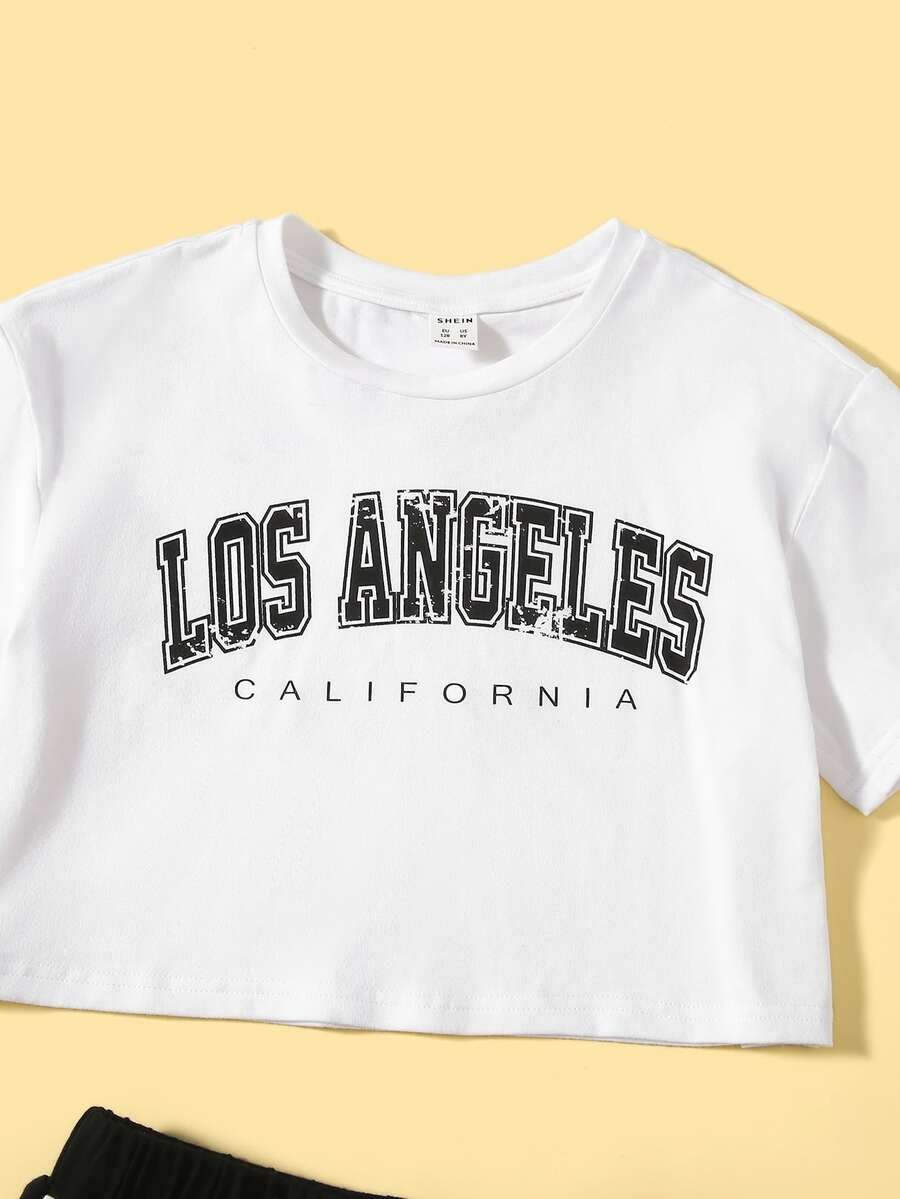 قاعدة قصيرة رسالية للفتيات من الفئة العمرية 12-14عامًا مع شورت بحواف متباينة