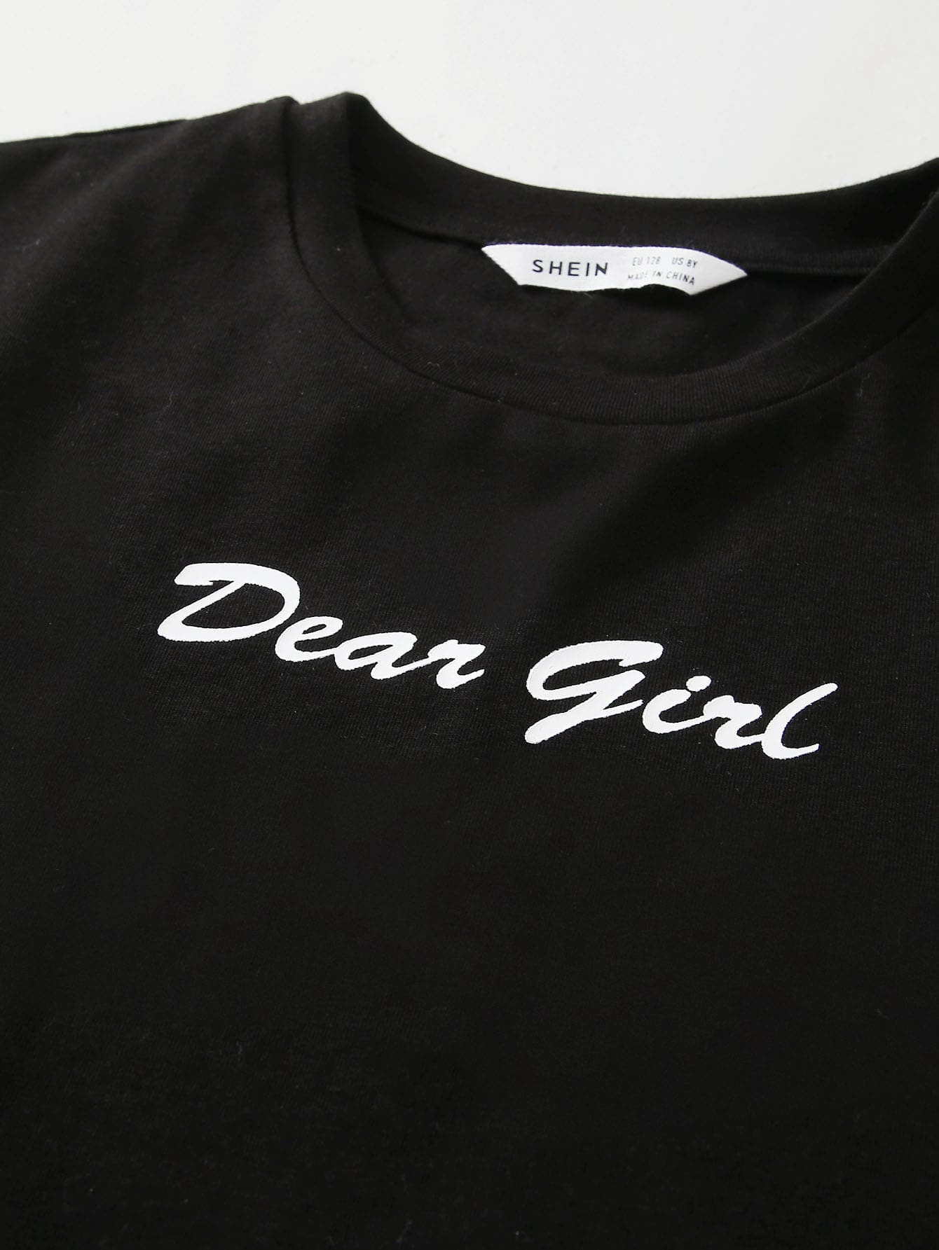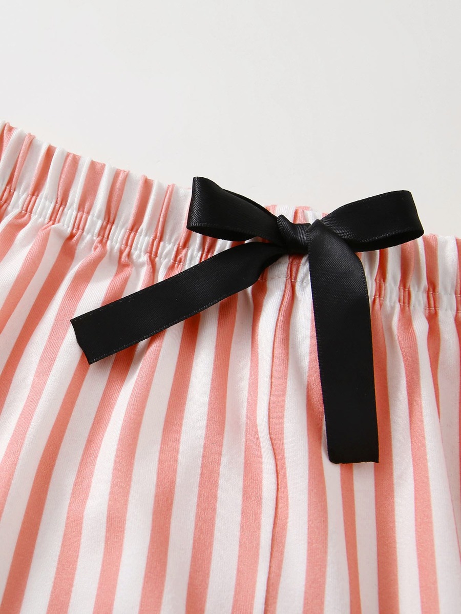 طقم بناطيل ذات خطوط مربوطة مع ملابس علوية مطبوع عليها رسائل للفتيات المراهقات