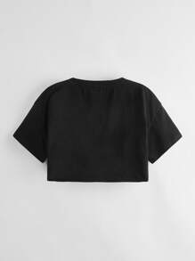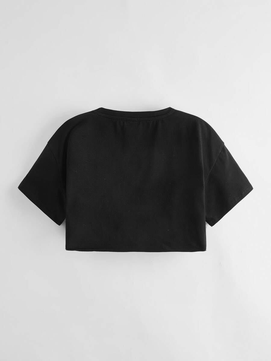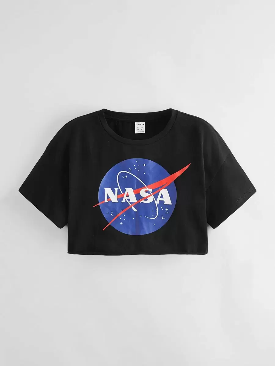 تي شيرت قصير بطباعة كوكبة وعبارة للبنات