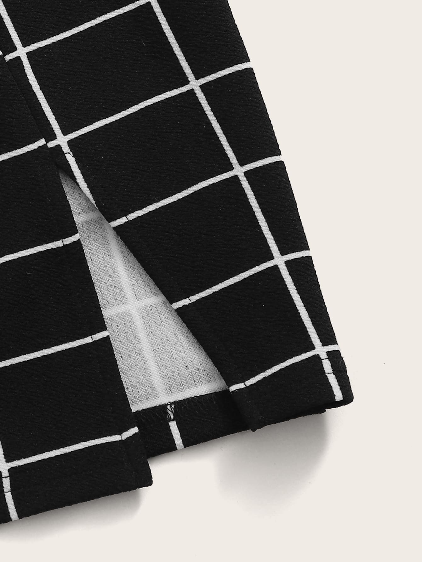 طقم بلوزة وتنورة لفتاة المراهقة بنمط خطوط شبكية وأحد كتفين من الضلع
