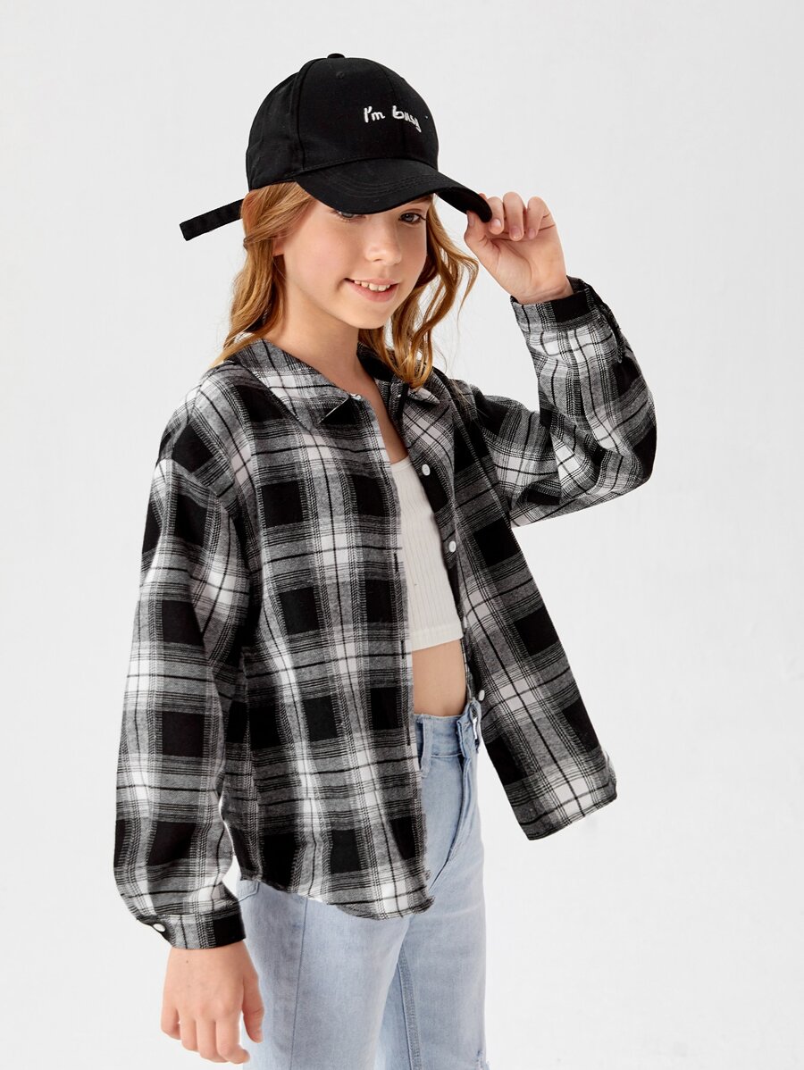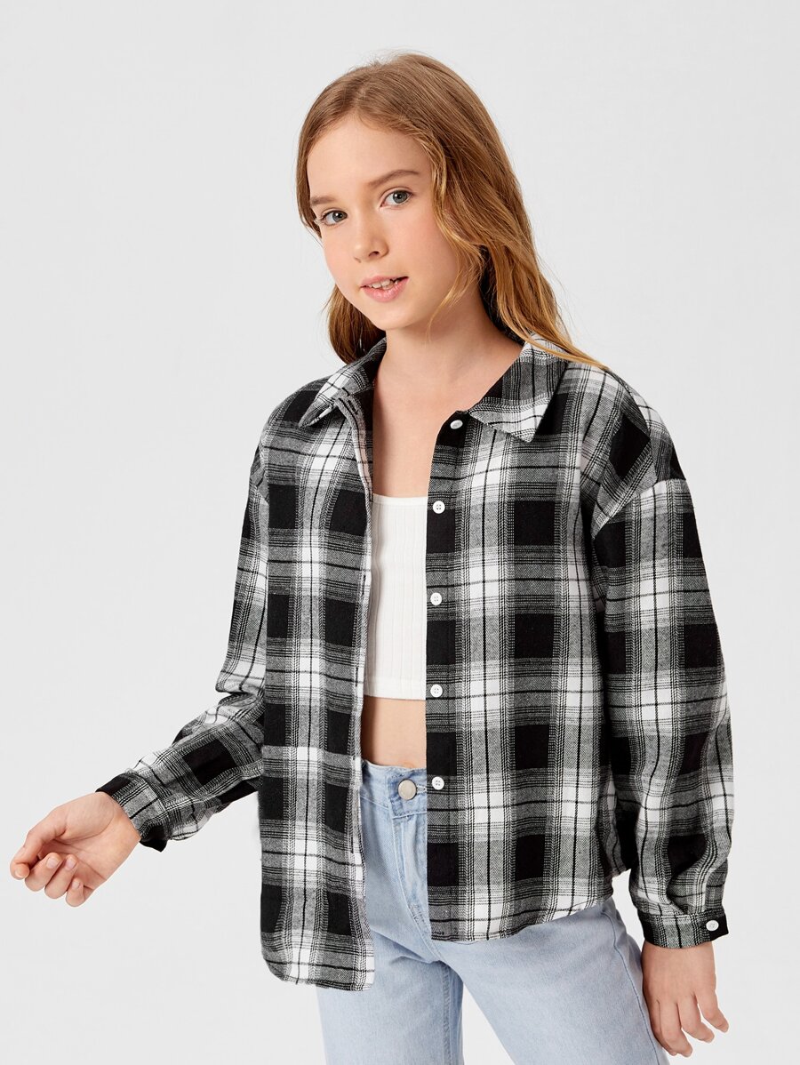 بلوزة فتاة مراهقة مربعات بأكتاف منخفضة