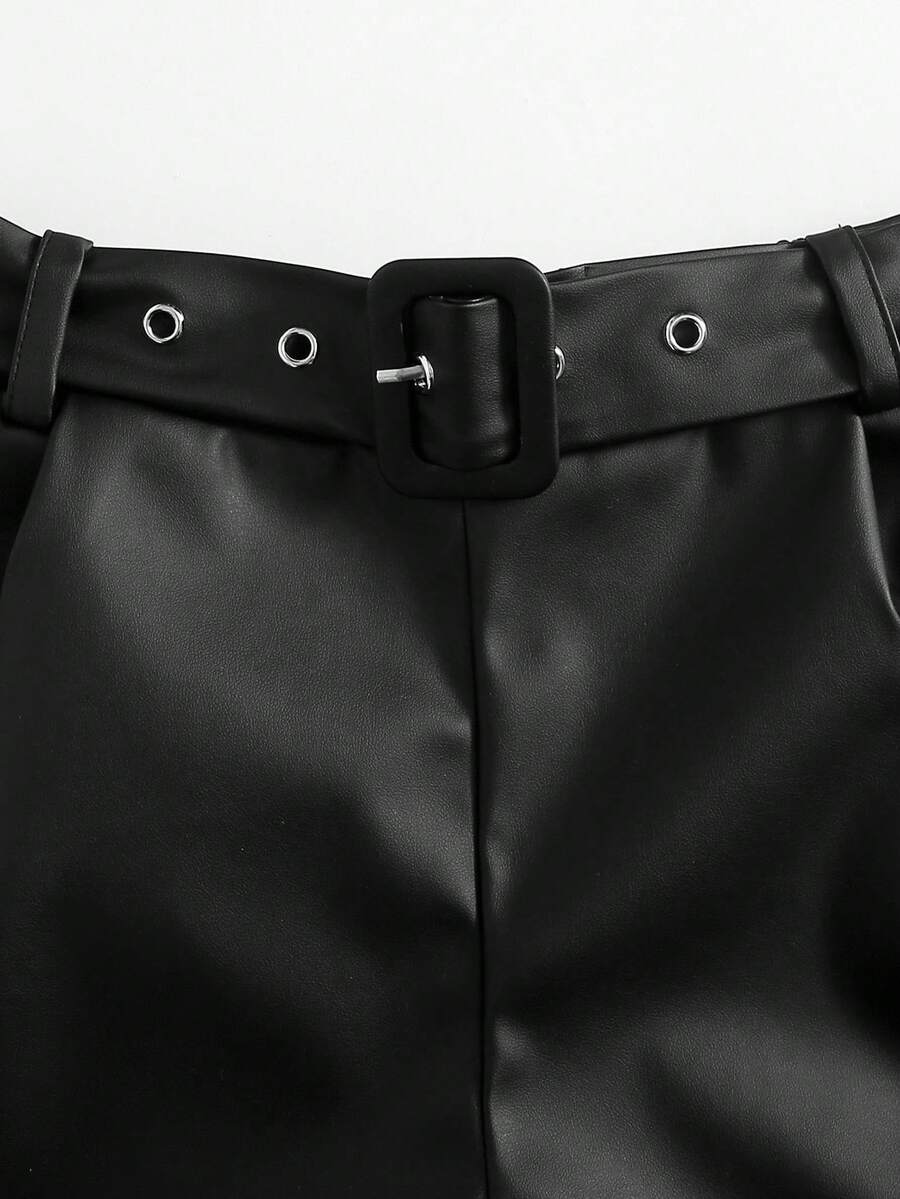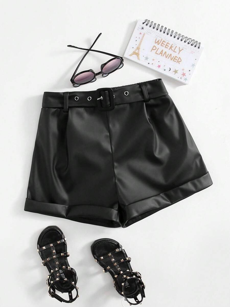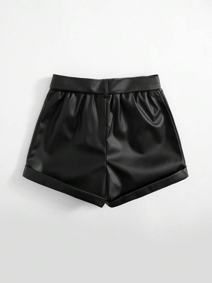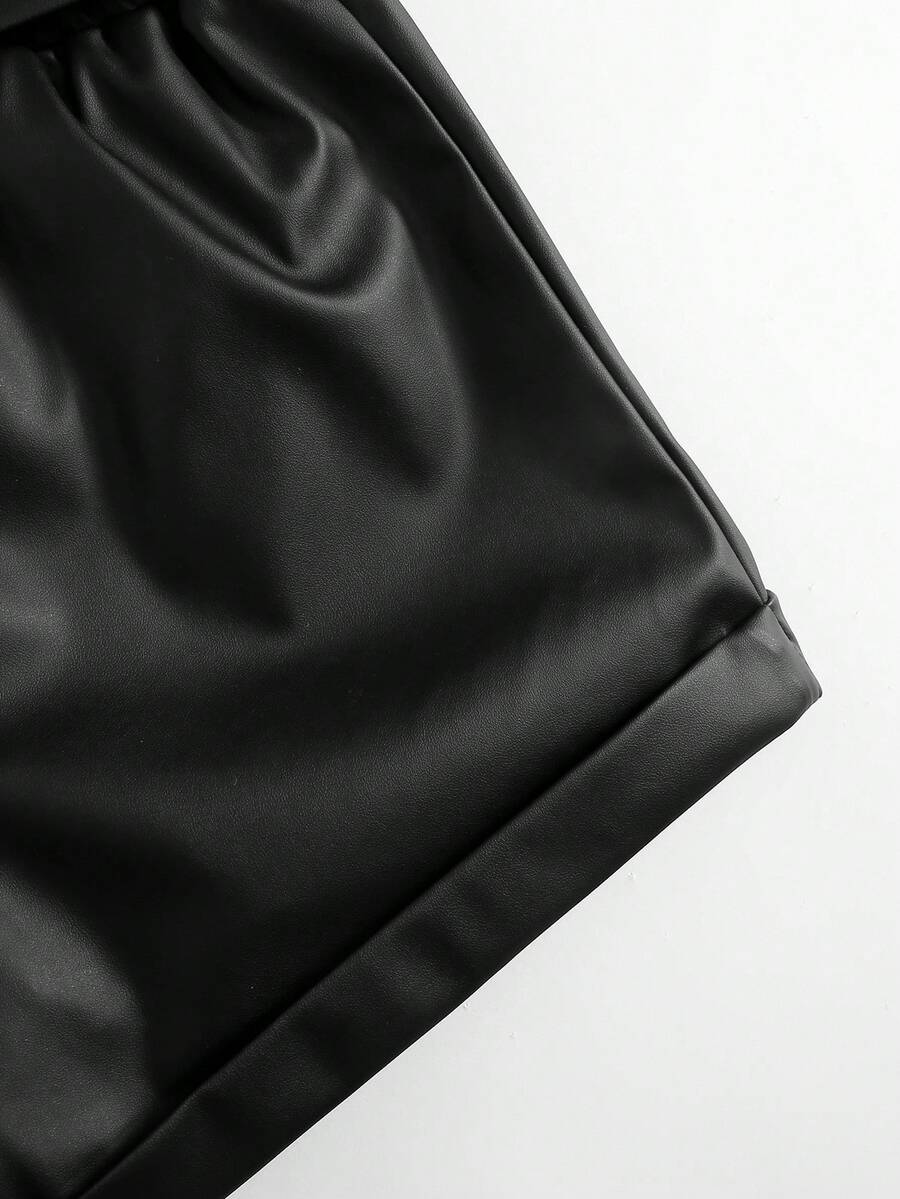 شورت جلدي للفتيات مع حزام معقود وأساور ملفوفة