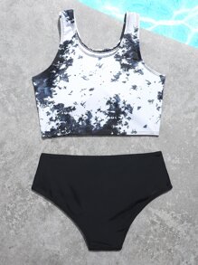 تنكيني صيفي مطوي صبغ ربطة للفتيات المراهقات