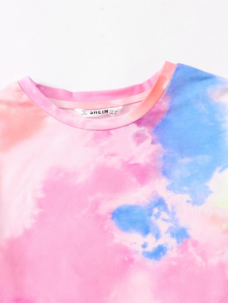 مجموعة تي شيرت وسراويل بنطلون بطول يصل إلى الركبة لفتاة المراهقة المزدوجة الملونة