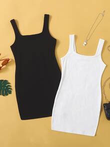 فستان مضلع بقماش مُحبوك لفتيات المراهقات عبوة تحتوي على 2 قطع