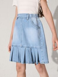 تنورة جينز بحافة مثني للبنات