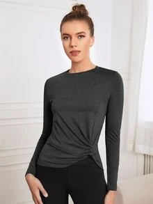 تي شيرت رياضي بلون موحد أمامي ملتوي