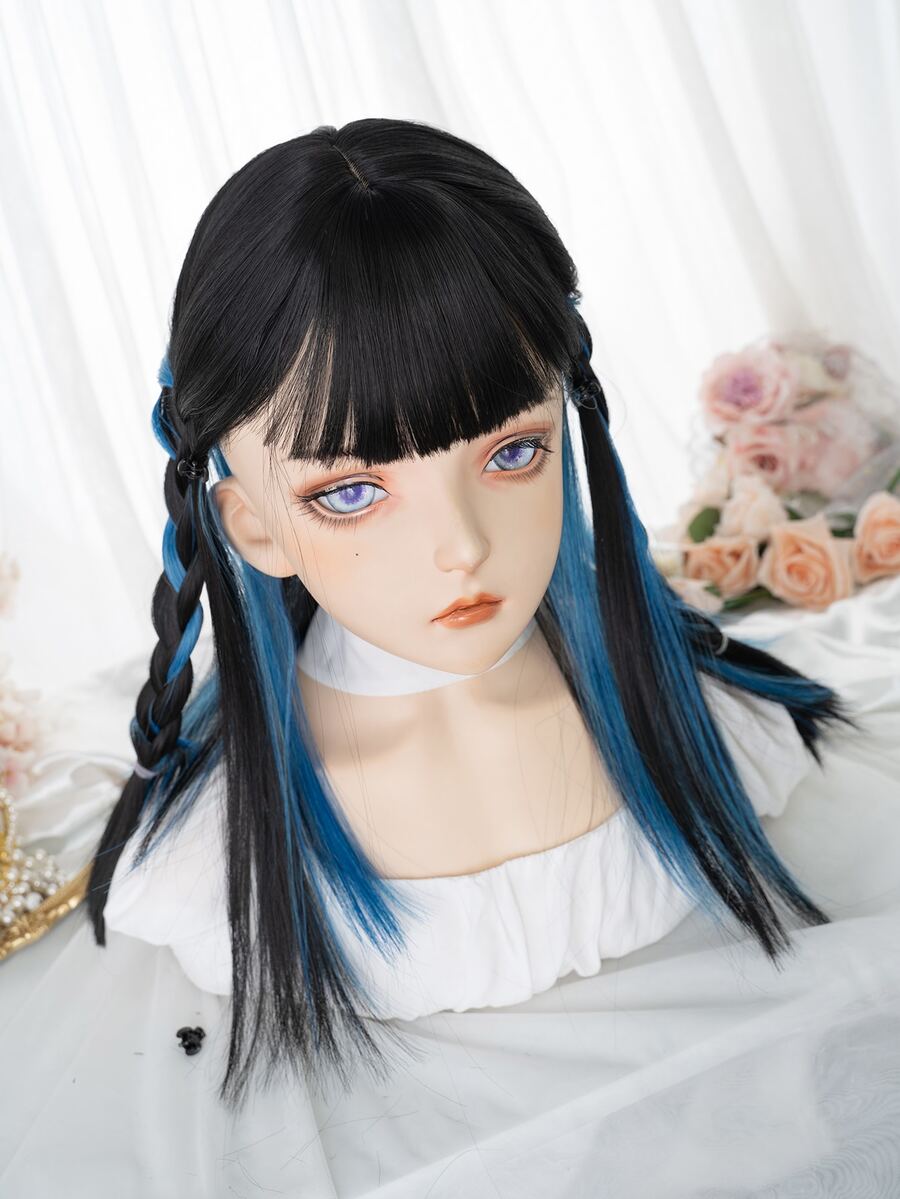 شعر مستعار صناعي لونين متوسط مستقيم مع شعر ناصية