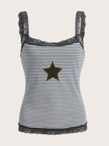 قميص ضيق منقوش بالنجوم والشرائط المطرزة من نسيج الدانتيل متعدد الاستخدامات