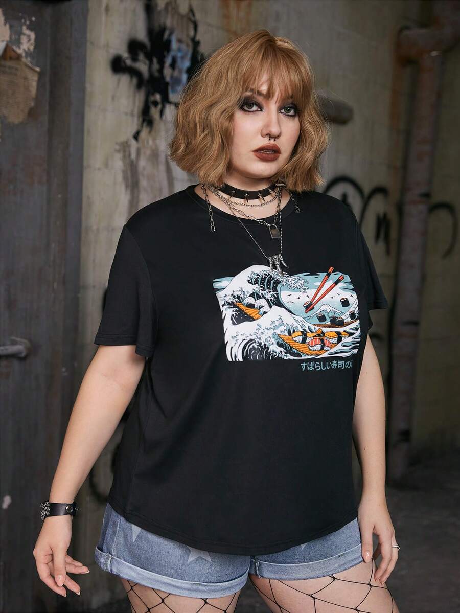 Vincenttrinidadart تي شيرت نمط موجة مقاس كبير