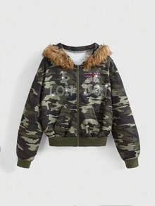 ROMWE Avant هودي مزين بالراين ستون بطبعة الكاموفلاج الأمريكي الكلاسيكي