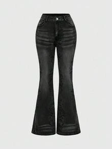 ROMWE Avant جينز مطبوع برسومات جرافيك بطراز بانك مهترئ عتيق