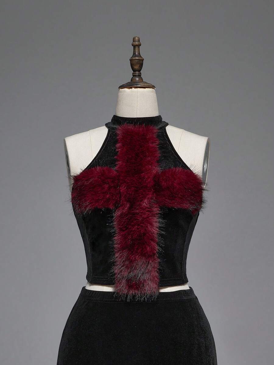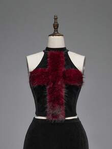 Goth سترة جلد مخملية بصليب عتيقة ذات طراز جوتي