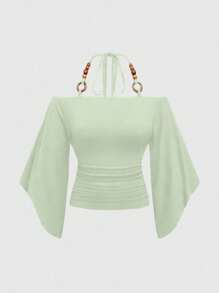 Hippie تنورة نسائية بأكمام خفيفة على الأكتاف مزينة بالخرز الخشبي، بأسلوب كلاسيكي