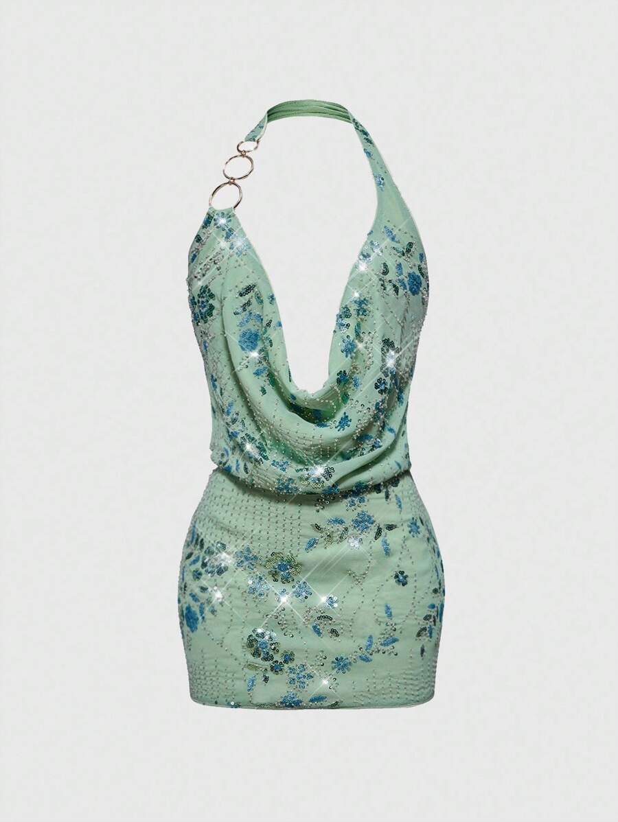 Hippie فستان صغير للنساء بياقة متساقطة وجذاب لحفلة Y2K
