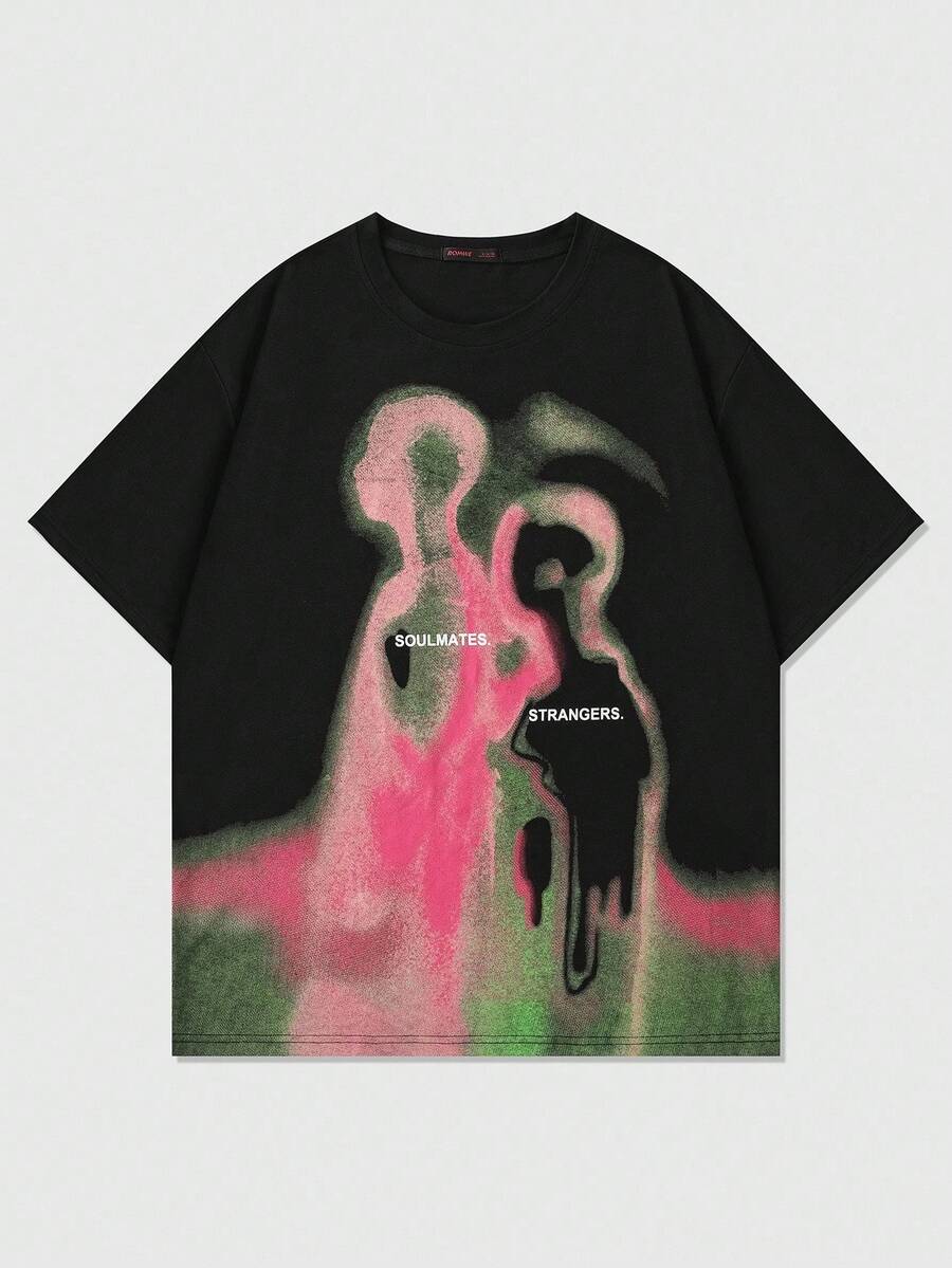 Street Life قميص تي شيرت قصير الأكمام مطبوع بصورة حرارية لشكل إنساني في شارع قديم، صيفي
