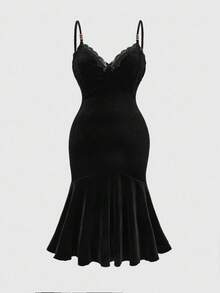 Grunge Punk فستان كوكتيل مزين بالدانتيل والكشكشة من الخشب والمخمل الأسود الصلب بطراز Y2K الرجعي، فستان ضيق للسيدات بمقاسات كبيرة، مناسب للتنسيق مع طبقات أخرى