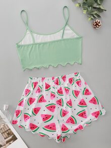 طقم بيجامة كامي بجرافيك شعار وبطيخ