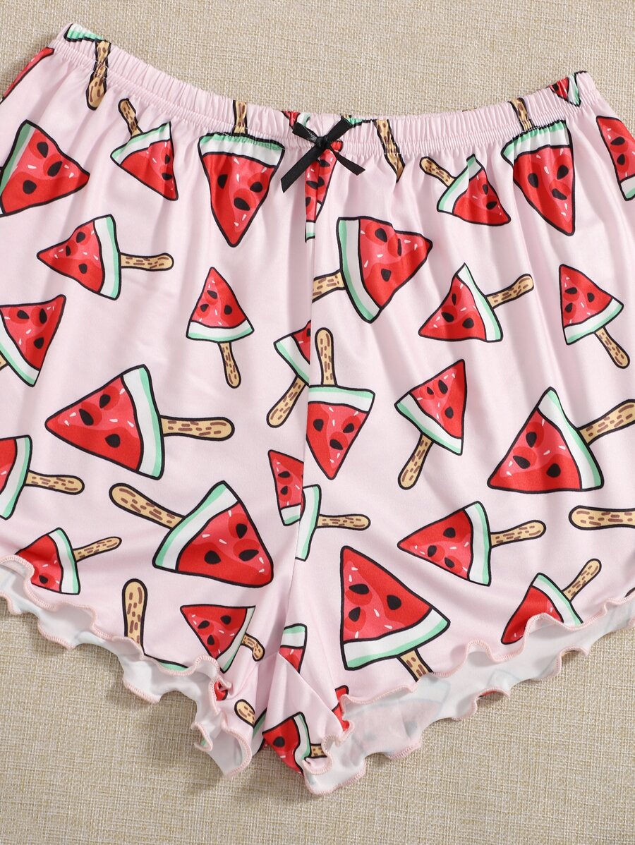 طقم بيجامة البطيخ مع بطباعة قلب مقلم نمط نبات الخس