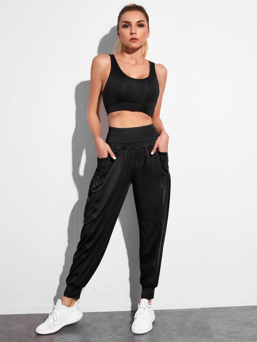 بنطلون رياضي بخصر رباط عريض مع جيب تلفون