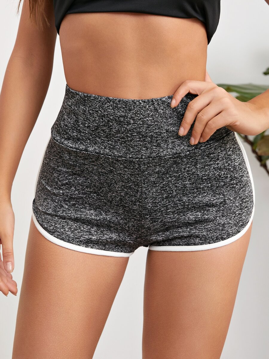 سروال قصير محبوك بشريط مقوس متباين وبخصر بشريط عريض