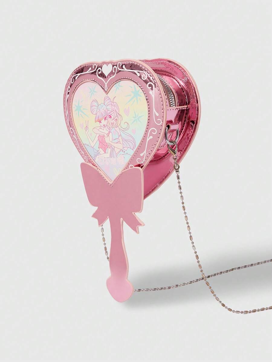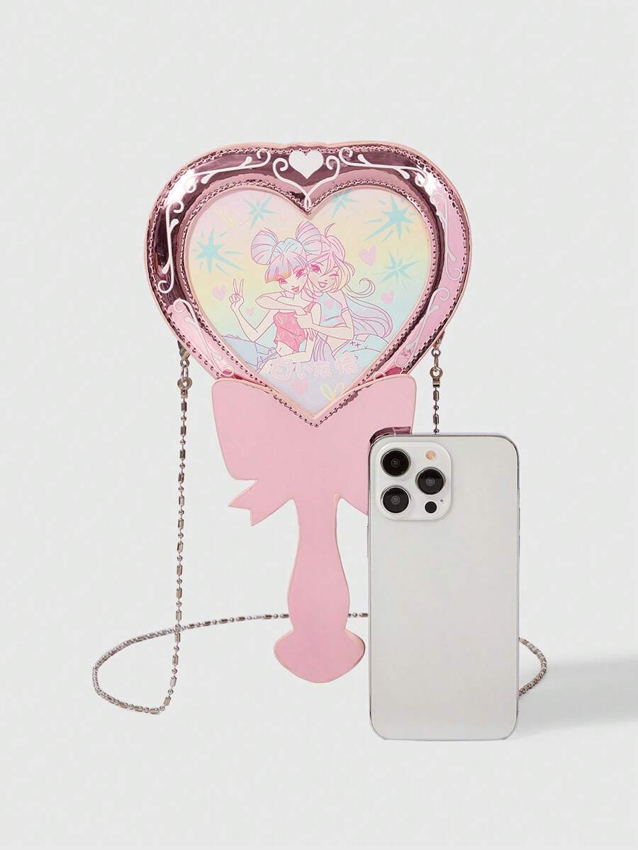 Winx Club X ROMWE حقيبة كروس بادي على شكل قلب لطيف للنساء، محفظة أنيقة بتصميم بسيط جديد