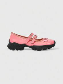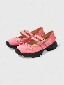 Goth أحذية بالية نسائية ذات كعب سميك بتصميم فيونكة وأصبع مستدير، مصنوعة من مادة البولي يوريثان، باللون الوردي مع تصميم إبزيم، مناسبة للرياضة والتخرج والتصوير الفوتوغرافي