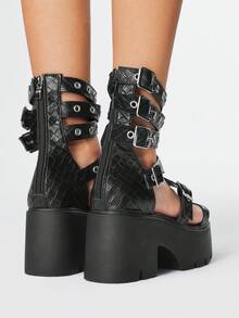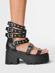 Grunge Punk صنادل نسائية بكعب سميك وفتحة للأصابع، بتصميم روماني للشاطئ، مناسبة للصيف، مزودة بأشرطة وأبزيم، تصميم بانك روك داكن وغوث، صنادل منصة للطلاب، مناسبة لمناسبة هالوين