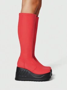 Grunge Punk بوت كاحل نسائية ذات كعب منصة وردي وأسود، مصنوعة من مطاط مرن بتصميم أنيق مناسبة للارتداء اليومي والطراز البانك والروك والحرم الجامعي