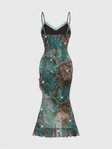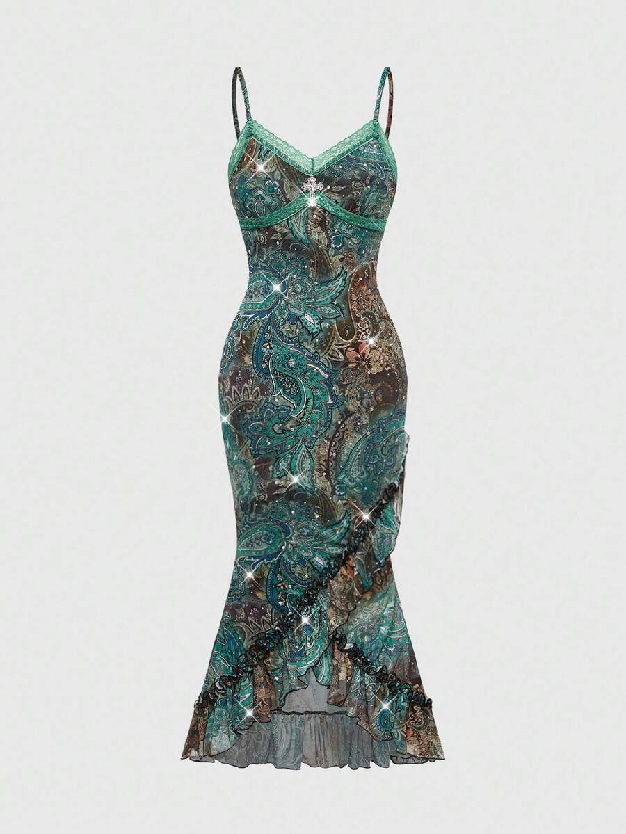 Hippie فستان أنيق للنساء بطبعة البيزلي الفاخرة والكشكشة على الحافة والأكمام بدون أكمام