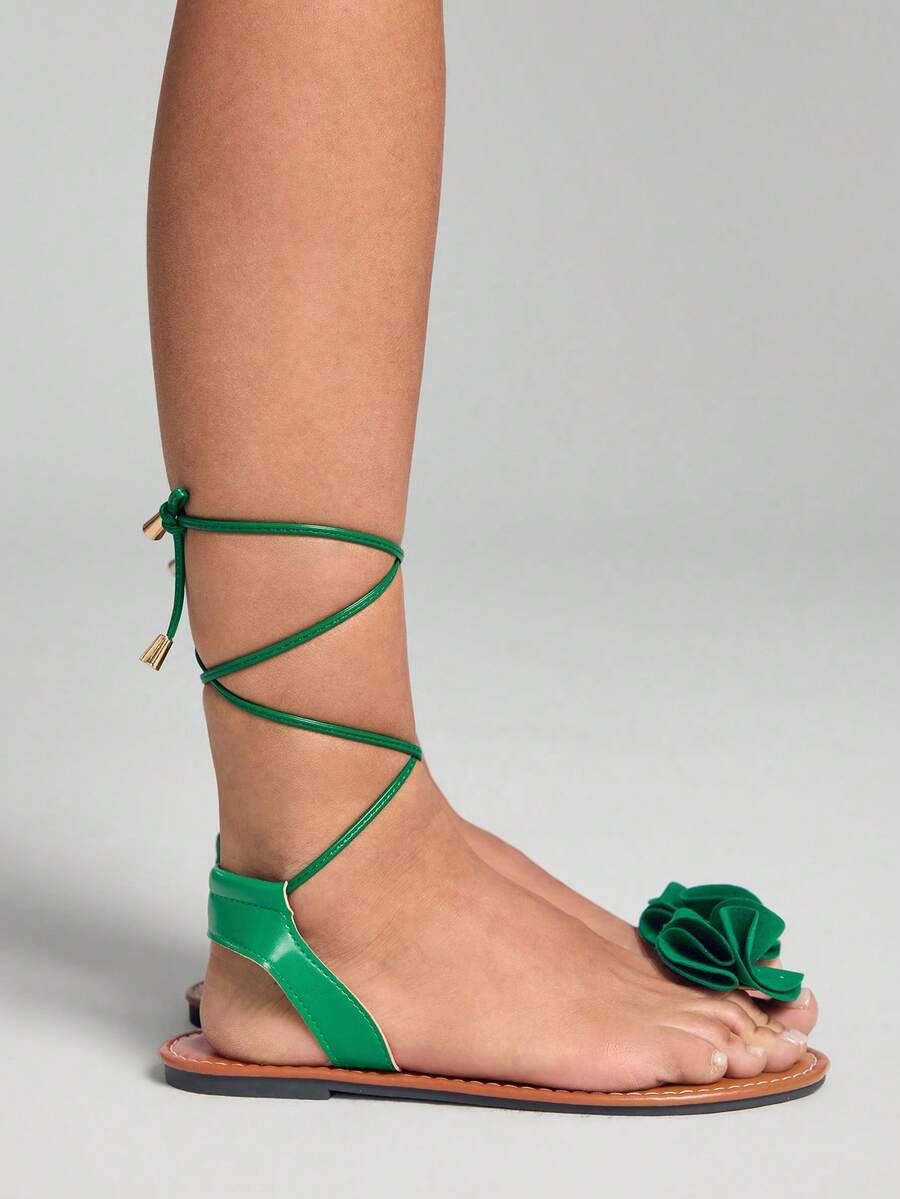 Fairycore نعال شرائط كاجوال مسطحة للنساء، موديل صيفي جديد، بتصميم فرنسي بفتحة للإصبع الدائرية المستديرة، مزين بنقشة الزهور وشريط للكاحل، متعدد الاستخدامات، طراز عطلة نهاية الأسبوع في الشاطئ، بتصميم روماني مربوط، متوفر باللون الأبيض والأخضر والبنفسجي والأسود