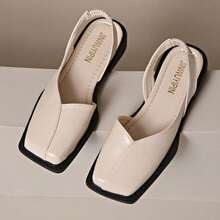 Kawaii كعب مربع مربع الحجم للنساء ، كعب سميك ، من جلد صناعي بيج وذهبي ، مع نعل مطاطي ، مريح للارتداء اليومي | صنادل مسطحة | أحذية ذات نعل مطاطي