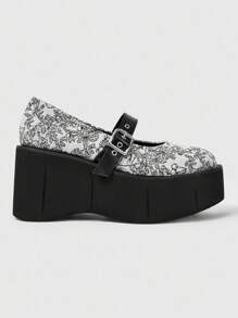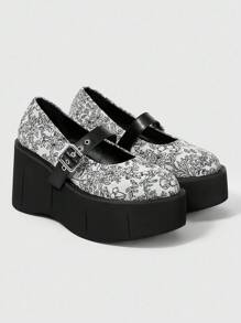 Grunge Punk أحذية كاجوال للنساء بطراز بانك جوثيك، بنعل سميك، بتصميم مطبوع عشوائي بالأزهار على الجزء العلوي من القماش، مع أشرطة معدنية قابلة للتعديل، مريحة للارتداء اليومي والتنقل، مناسبة لمناسبة هالوين