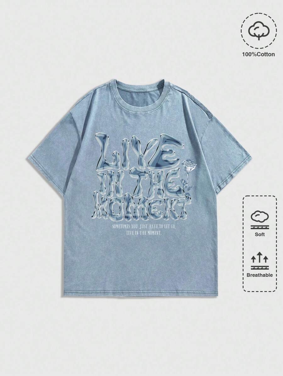 Grunge Punk تي شيرت نسائي مطبوع بحرف معدني وزهور وفراشات عشوائية