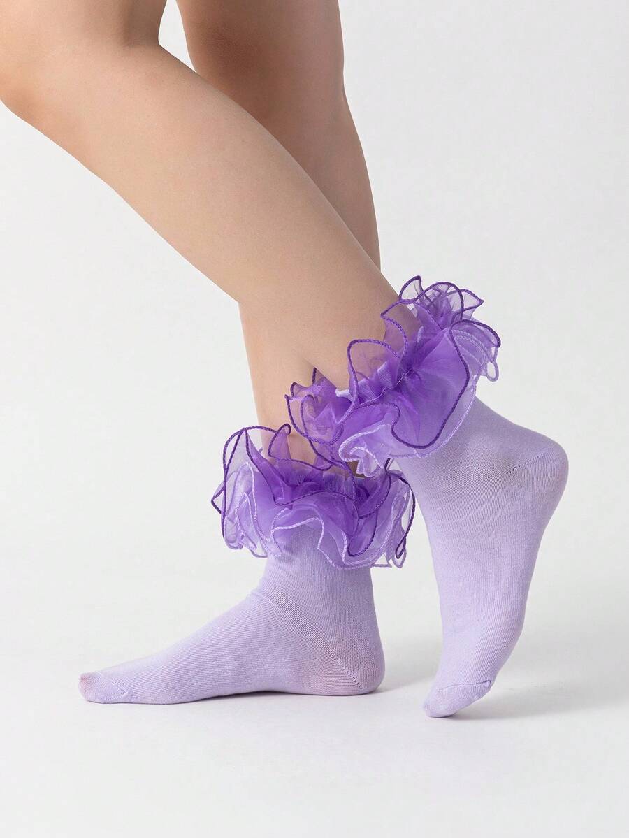 جوارب نسائية متوسطة الساق مع حواف مكشكشة، بطبقتين E