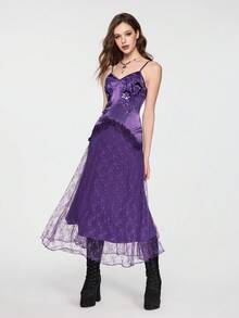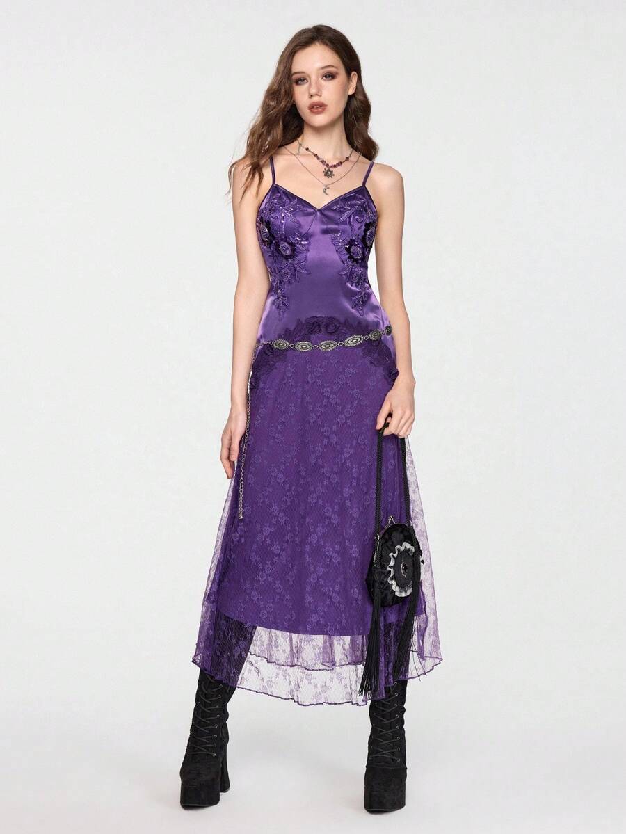 EDITION فستان ضيق مخملي بتصميم ساحر لليلة الساحرة الغامضة، مزين بالدانتيل والخرز والتطريز الزهري الفاخر بطراز عتيق
